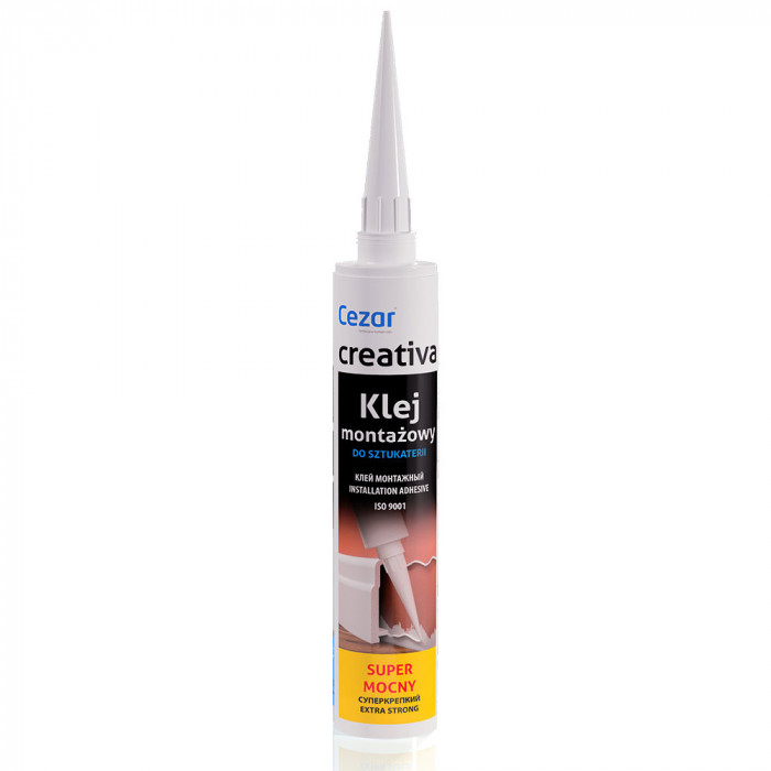 Клей монтажний Creativa суперміцний монтажний клей застосовується для встановлення дюрополімерного плінтуса. Він досить універсальний і служить для приклеювання дерева, каменю, кераміки, пластмаси (за винятком поліетилену та поліпропілену) в будь-яких поєднаннях. Цей клей чудово склеює метал на бетонних підставах.