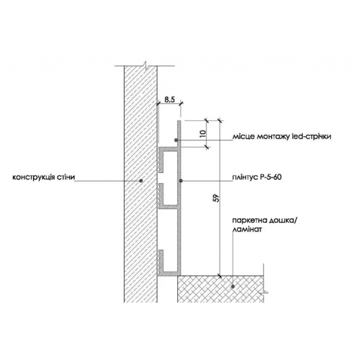 Плінтус алюмінієвий прихованого монтажу 60 мм (P-1-60) RAL