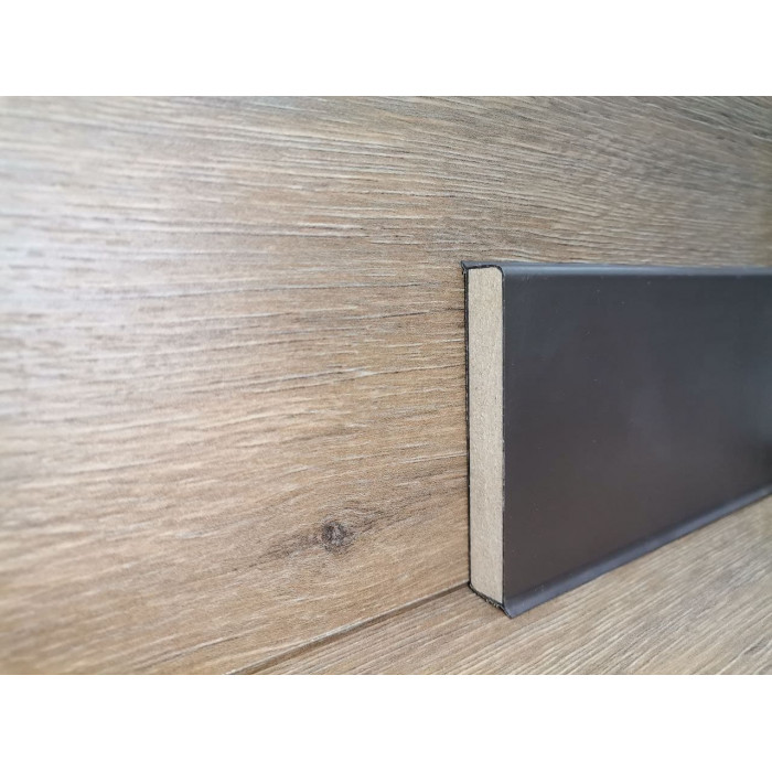 Високоякісна деревоволокниста основа з деревини хвойних порід обрамляється високоефективним полімерним матеріалом. Плінтуси мають високу еластичність і витримують важкі механічні навантаження. Завдяки полімерному покриттю, на 100% стійкий до води. Виготовляється із екологічно чистого матеріалу без вживання хлору. Стійкий до пошкоджень (води, ударів та ін.).