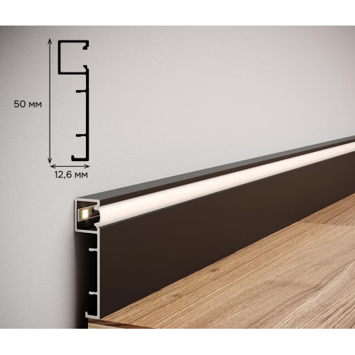 Плінтус алюмінієвий накладний LED 50х12х2500 мм з LED →