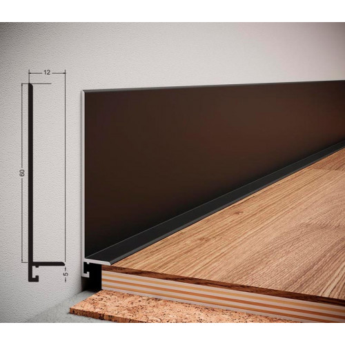Плінтус алюмінієвий накладний L-профіль 60 мм L-60
