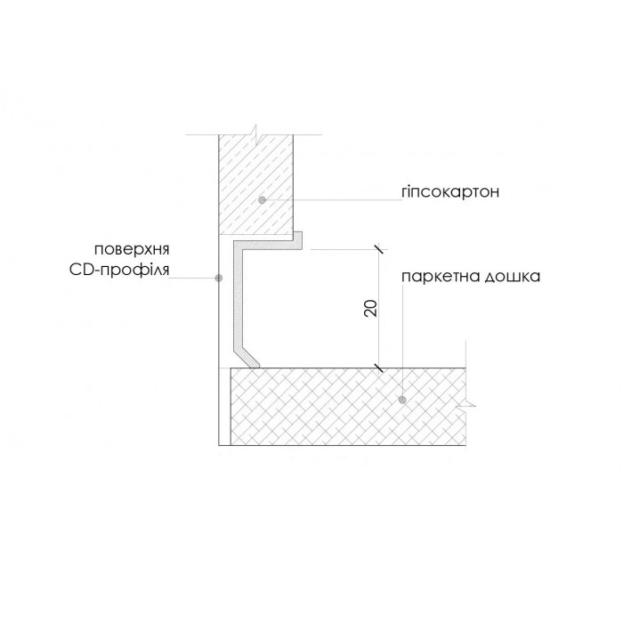 Плінтус алюмінієвий тіньового шва 20 мм (P-1-20A)