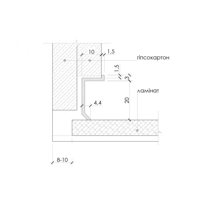 Мінімально помітний алюмінієвий профіль для оформлення стику стін і покриття для підлоги або прихований плінтус, тіньовий шов.