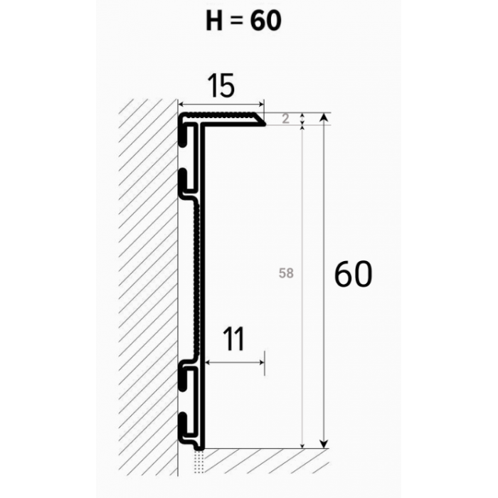 Алюмінієвий плінтус прихованого монтажу 60мм RAL ALU-S6015