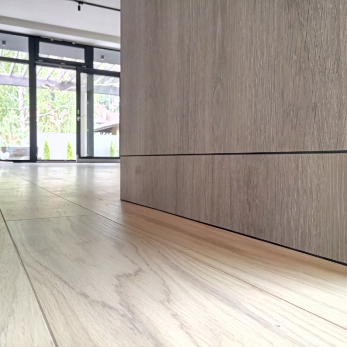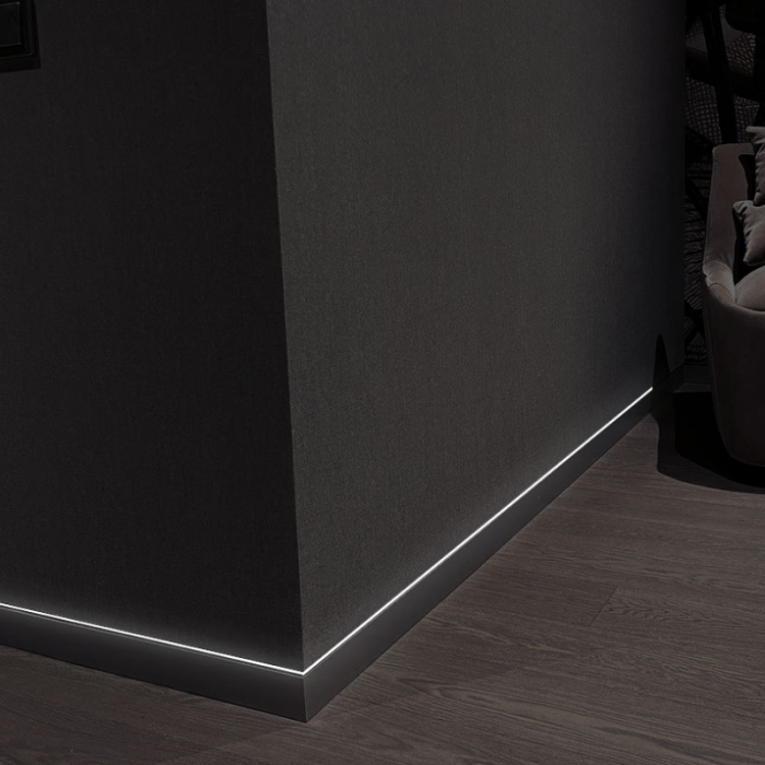 Плінтус прихованого монтажу - це стильний плінтус для нових нестандартних дизайнів інтер'єру, водночас міцний та функціональний декоративний елемент.  Вмонтований у стіну прихований профіль - це естетичний зовнішній вигляд, одна площина зі стіною, а значить - більше місця та меблі впритул, плюс ніяких заглушок та куточків.