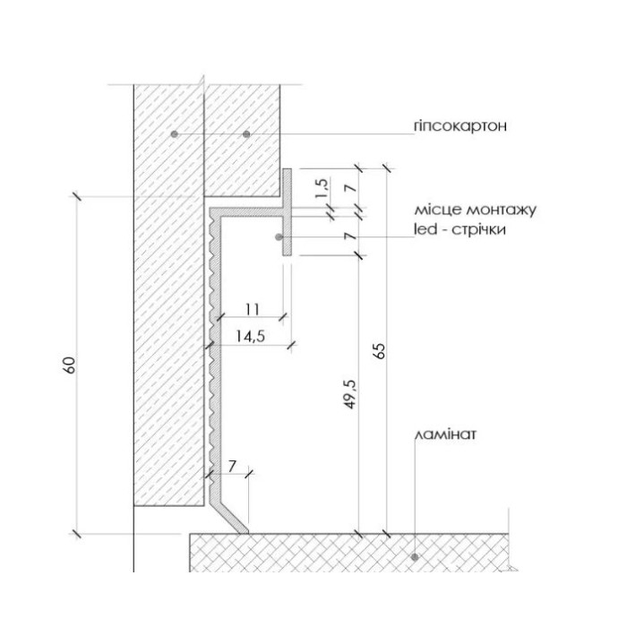 Плінтус алюмінієвий прихованого монтажу для підсвічування LED 60 mm (P-2-60C) RAL