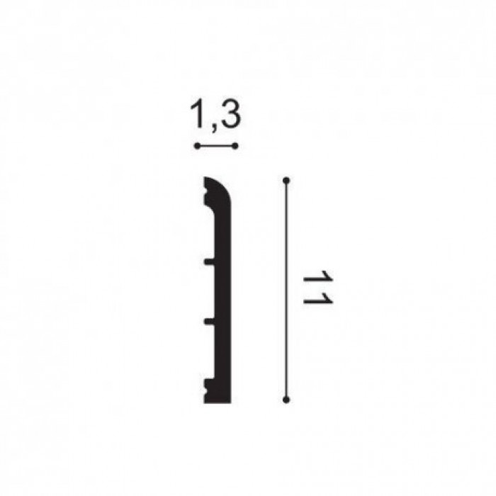 Сучасний плінтус з борозенками. Непомітний дизайн для делікатного переходу від підлоги до стіни. Круглі стіни або вигнуті поверхні не становлять жодних труднощів для технології Flex.