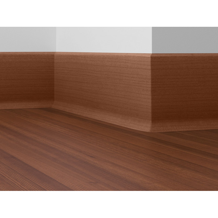 Високоякісна деревоволокниста основа з деревини хвойних порід обрамляється високоефективним полімерним матеріалом. Плінтуси мають високу еластичність і витримують важкі механічні навантаження. Завдяки полімерному покриттю, на 100% стійкий до води. Виготовляється із екологічно чистого матеріалу без вживання хлору. Стійкий до пошкоджень (води, ударів та ін.).