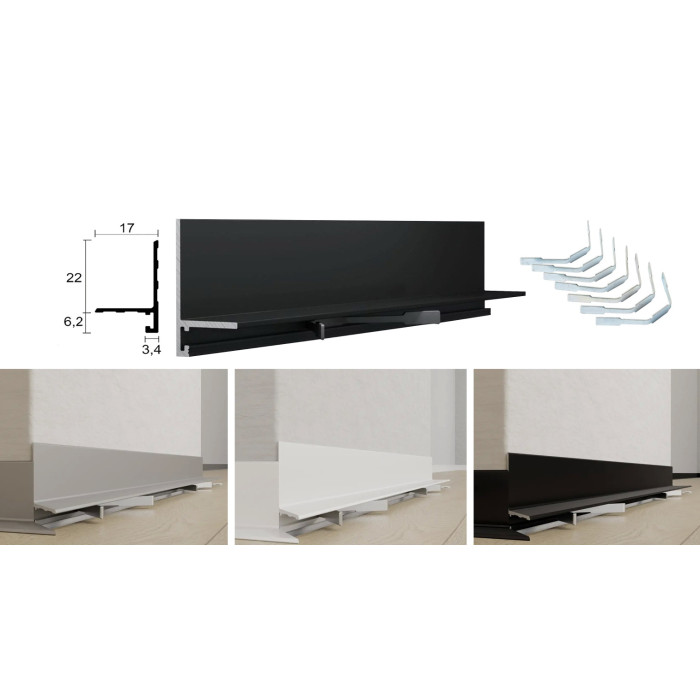 Мікроплінтус алюмінієвий профільний 17мм (під пружинку) Білий