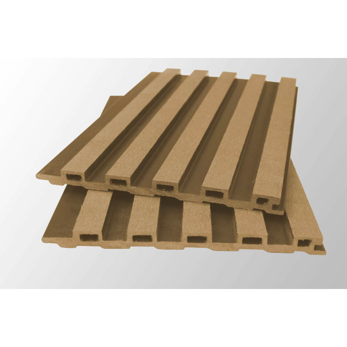 Фасадна панель із ДПК є найновішим винаходом у сфері дерев'яного домобудування. Особливість виробництва фасадної дошки з композитної деревини полягає в її безвідходності, на відміну від стругання деревини та додаванні полімерів, безпечних для здоров'я, а отже, отримуємо достатню екологічність матеріалу, схожу з виробом з натурального дерева. Полімери, що входять до складу дерев'яного композиту та забезпечують високу міцність та гнучкість виробу, захищають панель від дії комах, грибків та інших паразитів.