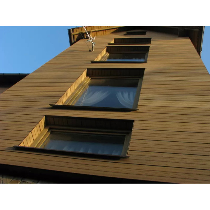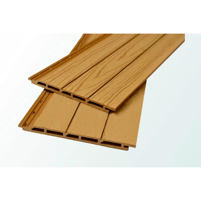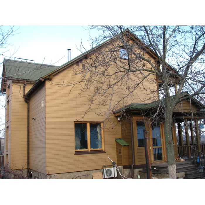 Облицювальні панелі сайдинга виготовляються відповідно до стандартних розмірів або відповідно до розробленого проекту. Як матеріал основи використовується деревно-полімерний композит (ДПК), що складається з: борошна деревини, полімеру та барвників.