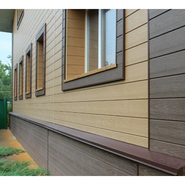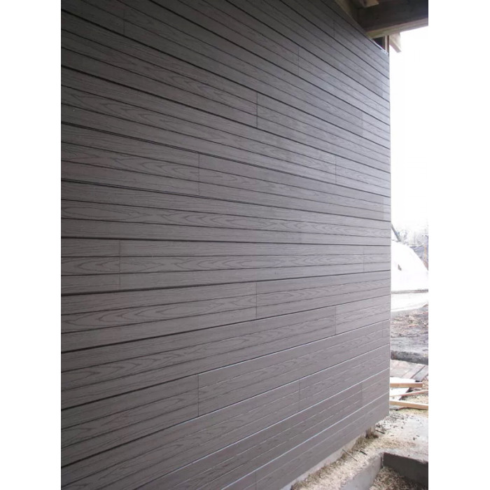Облицювальні панелі сайдинга виготовляються відповідно до стандартних розмірів або відповідно до розробленого проекту. Як матеріал основи використовується деревно-полімерний композит (ДПК), що складається з: борошна деревини, полімеру та барвників.
