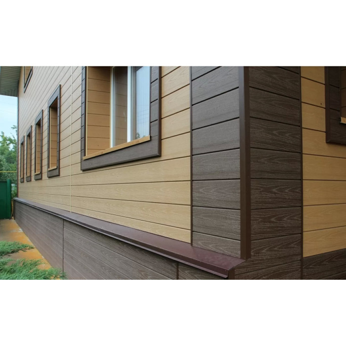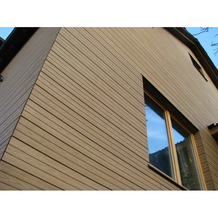 Облицювальні панелі сайдинга виготовляються відповідно до стандартних розмірів або відповідно до розробленого проекту. Як матеріал основи використовується деревно-полімерний композит (ДПК), що складається з: борошна деревини, полімеру та барвників.